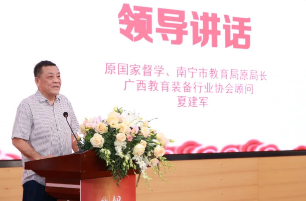 原國(guó)家督學(xué)、南寧市教育局原局長(zhǎng)、廣西教育裝備行業(yè)協(xié)會(huì)顧問(wèn)夏建軍為活動(dòng)致辭。他對(duì)協(xié)會(huì)十年來(lái)的工作給予了充分的肯定,站在教育裝備行業(yè)高質(zhì)量發(fā)展的角度,對(duì)協(xié)會(huì)提出了更高更新的要求,寄予了深厚殷切的期望。