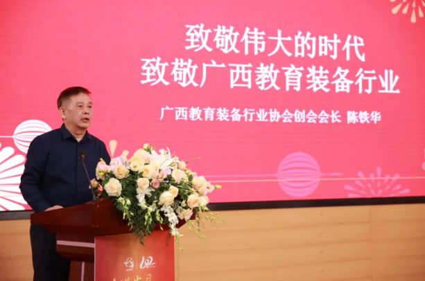 協(xié)會(huì)創(chuàng)會(huì)會(huì)長(zhǎng)陳鐵華作了主題為“致敬偉大的時(shí)代,致敬廣西教育裝備行業(yè)”的講話。他和與會(huì)人員分享了創(chuàng)立協(xié)會(huì)的初衷及過(guò)程,回顧了協(xié)會(huì)十年來(lái)的發(fā)展歷程。十年來(lái),協(xié)會(huì)以“為政府服務(wù),為教育服務(wù),為會(huì)員發(fā)展服務(wù)”的宗旨,服務(wù)教育教學(xué)的需求和裝備產(chǎn)業(yè)的發(fā)展,和教育同呼吸,共命運(yùn),在專業(yè)引領(lǐng)、規(guī)范行業(yè)、愛(ài)心助學(xué)、創(chuàng)辦示范等多方面開(kāi)展工作,取得了一定的成績(jī)。這都受益于這個(gè)偉大的時(shí)代,受益于每一位為教育事業(yè)努力和付出的人。他表達(dá)了對(duì)未來(lái)的教育裝備行業(yè)發(fā)展的期許,并期盼行業(yè)企業(yè)把握機(jī)遇,再創(chuàng)輝煌!