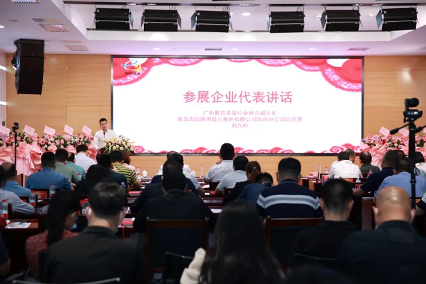 協(xié)會(huì)副會(huì)長(zhǎng)、廣西科訊慧桂公司總經(jīng)理王晶晶,協(xié)會(huì)副會(huì)長(zhǎng)、青島海信華南分公司總經(jīng)理劉興府,協(xié)會(huì)副會(huì)長(zhǎng)、海威集團(tuán)副總經(jīng)理梁革平,學(xué)前教育裝備分會(huì)秘書長(zhǎng)、廣西仟童公司經(jīng)理陳小亮作為歷屆參展代表和新參展代表發(fā)言。通過(guò)展示會(huì)的平臺(tái),企業(yè)在服務(wù)教育的同時(shí),也同時(shí)宣傳企業(yè)、宣傳產(chǎn)品、互動(dòng)交流,實(shí)現(xiàn)也共享共贏。