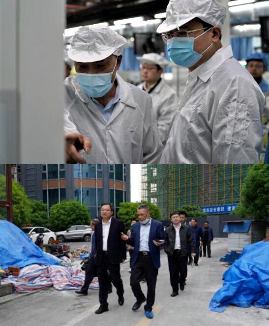4月29日下午,淳安縣委書記楊建根,縣委常委、副縣長徐新勇,經濟開發區管理委員會主任錢江,生態產業和商務局黨委書記、局長方陽等一行調研展芯科技與先芯科技,企業創始人陳賢興、先芯廠長王凱陪同并介紹經營情況。
