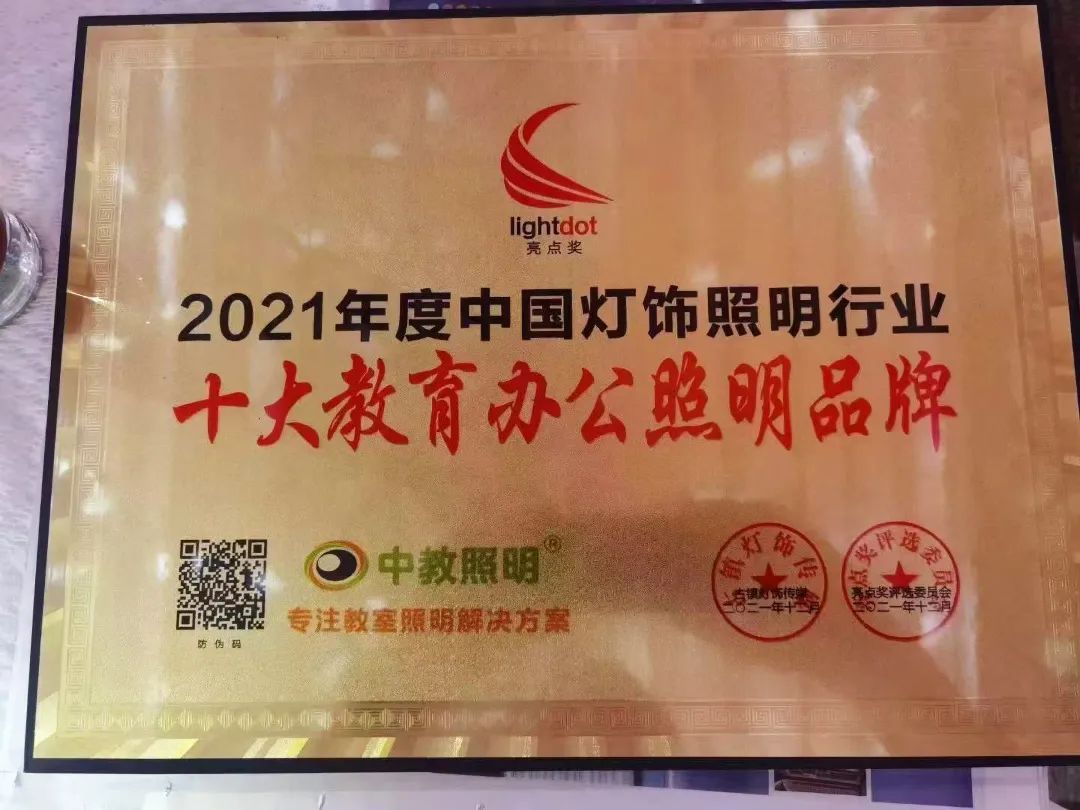 此次活動(dòng)共收到上百萬次網(wǎng)絡(luò)投票,并經(jīng)過專家層層嚴(yán)格評選,中教照明榮膺亮點(diǎn)獎(jiǎng)“2021年度行業(yè)十大教育辦公照明品牌”!