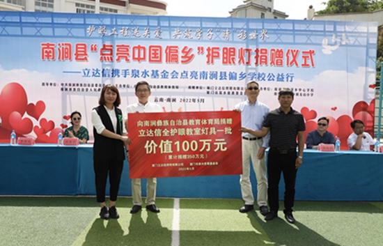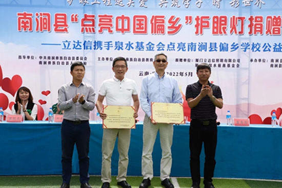 此次,立達信與泉水基金會為當地14所鄉村學校捐贈了價值100萬元的護眼教室燈,這已是項目在當地的第四批捐贈,累計42所鄉村學校受益,捐贈價值超350萬元,基本做到了南澗縣除教學點以外的鄉村學校全覆蓋,也是“點亮中國偏鄉”在單個縣域捐贈量最大、捐贈比例最高的地區。