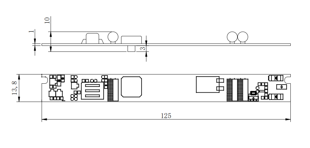 裸板設計,所有型號統一尺寸,輕薄小巧(L*H*W=125*13.8*10mm),不僅適用于標準STUCCHI外殼,也可滿足其他極窄外殼安裝需求,應用更廣泛,備貨更方便。