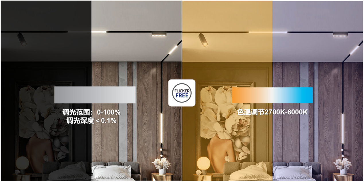 0.1%深度調光、調光曲線平滑、調光全程無頻閃,滿足年輕一代對高端品質燈光的需求。