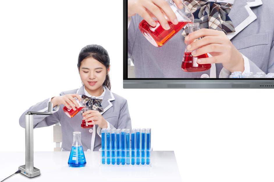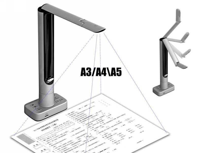 海天地K9 HDMI/USB雙模教學視頻展臺可拍攝試卷、課本、圖片及實驗道具等各式材料,可以同時傳輸高清即時動態視頻至大屏和電視上。