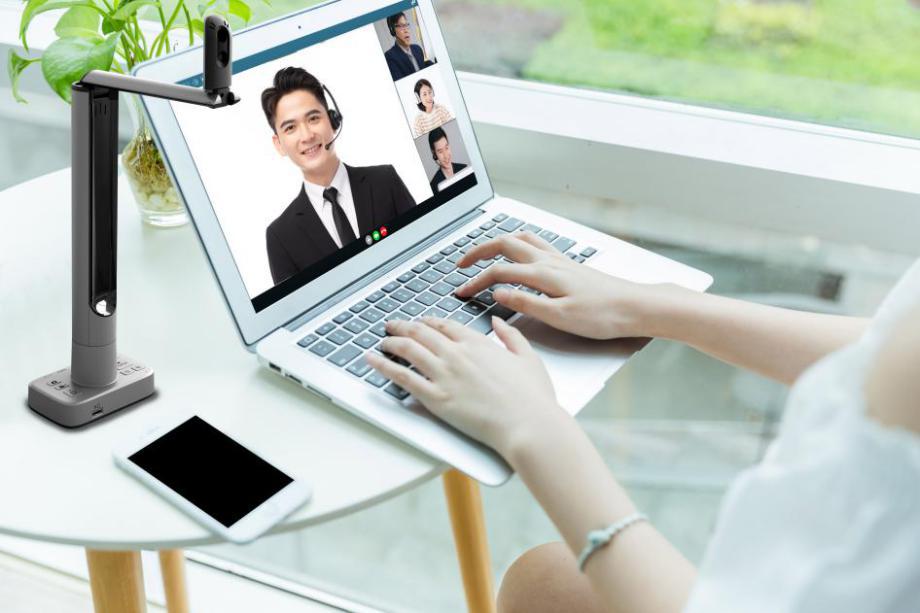 鏡頭部件可翻轉向前拍攝授課老師,并自動旋轉成垂直圖像,輕松兼顧課堂教學和網絡教學。