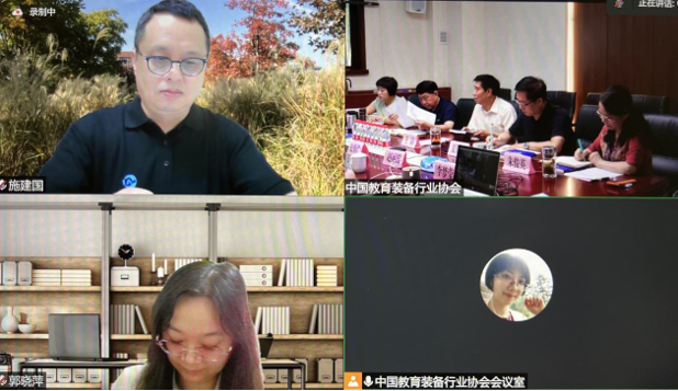2022年6月30日,《中國教育裝備行業藍皮書(2022版)》編寫研討會以線上線下結合的方式在京舉行。中國教育裝備行業協會(以下簡稱協會)黨支部書記王富、常務副會長夏國明,協會教育裝備研究院副院長李興植、施建國,來自教育部教育技術與資源發展中心、課程教材研究所、人民教育出版社、中國教育報刊社、北京理工大學等單位的特邀專家和協會理論研究部工作人員參加了會議。會議由協會副秘書長朱俊英主持。