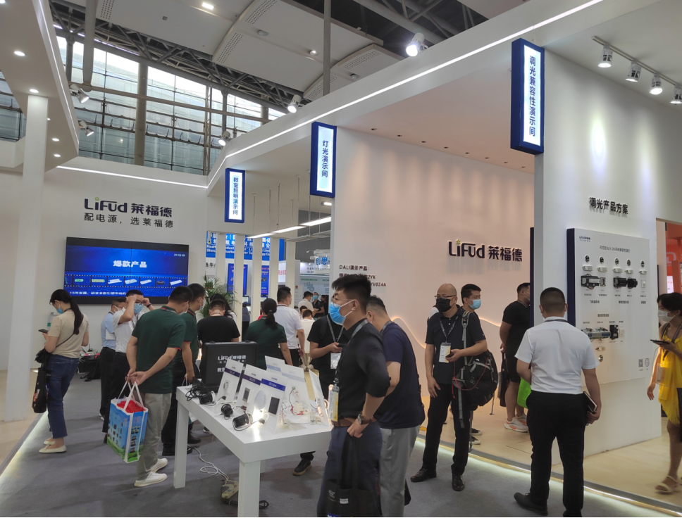 此次展會,萊福德靜態展示了筒射燈/導軌燈、面板燈/教室燈、條形燈/三防燈燈具應用以及戶外照明、工業照明、景觀亮化、植物照明、顯示屏場景的調光非調光電源解決方案。