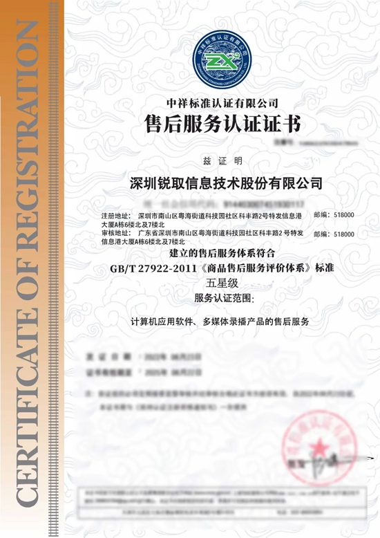 銳取心級服務,為新學期一錄護航!高品質服務的背后,是銳取人的默默耕耘,不僅深獲用戶的肯定,更是榮獲商品售后服務評價體系的五星級認證!