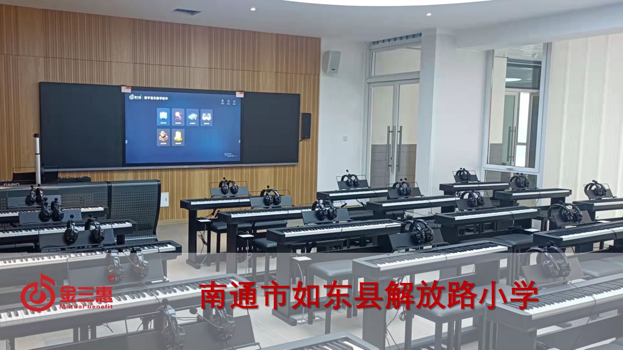 南通市如東縣解放路小學的數字音樂電鋼琴教室開始使用,由北京金三惠科技有限公司負責提供、安裝、培訓。