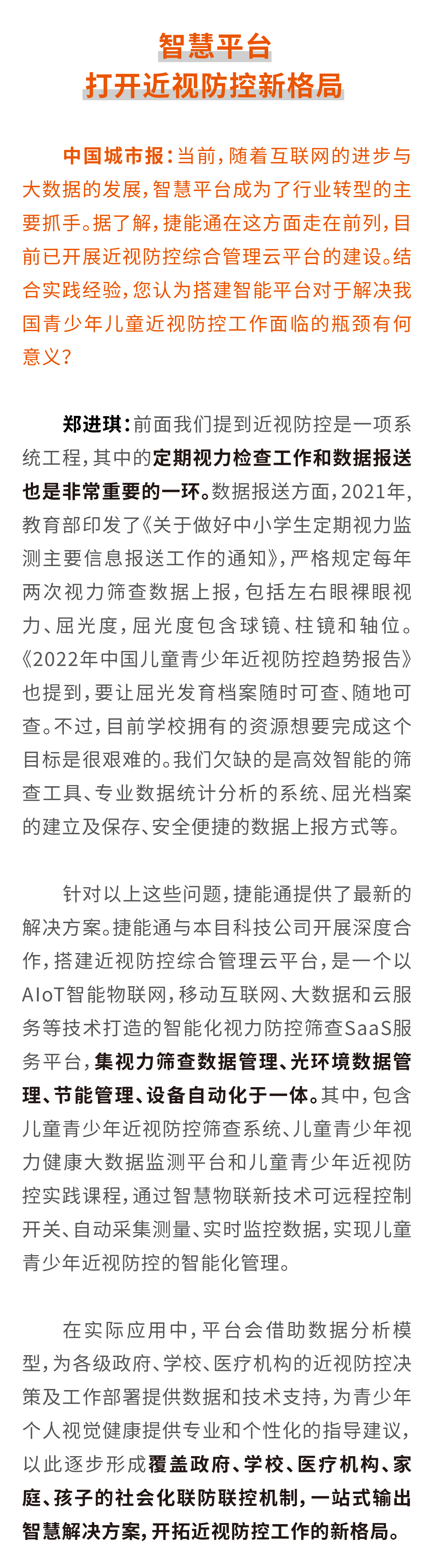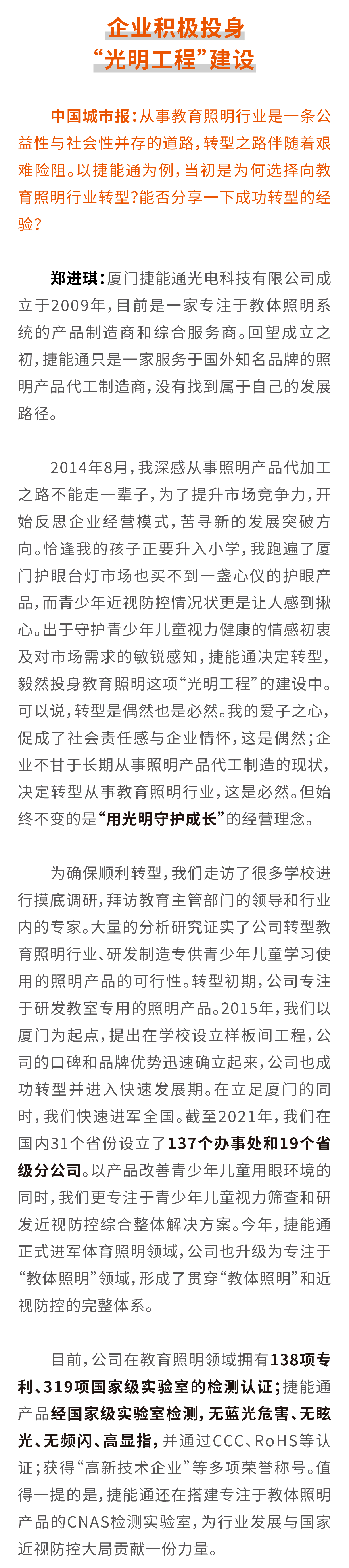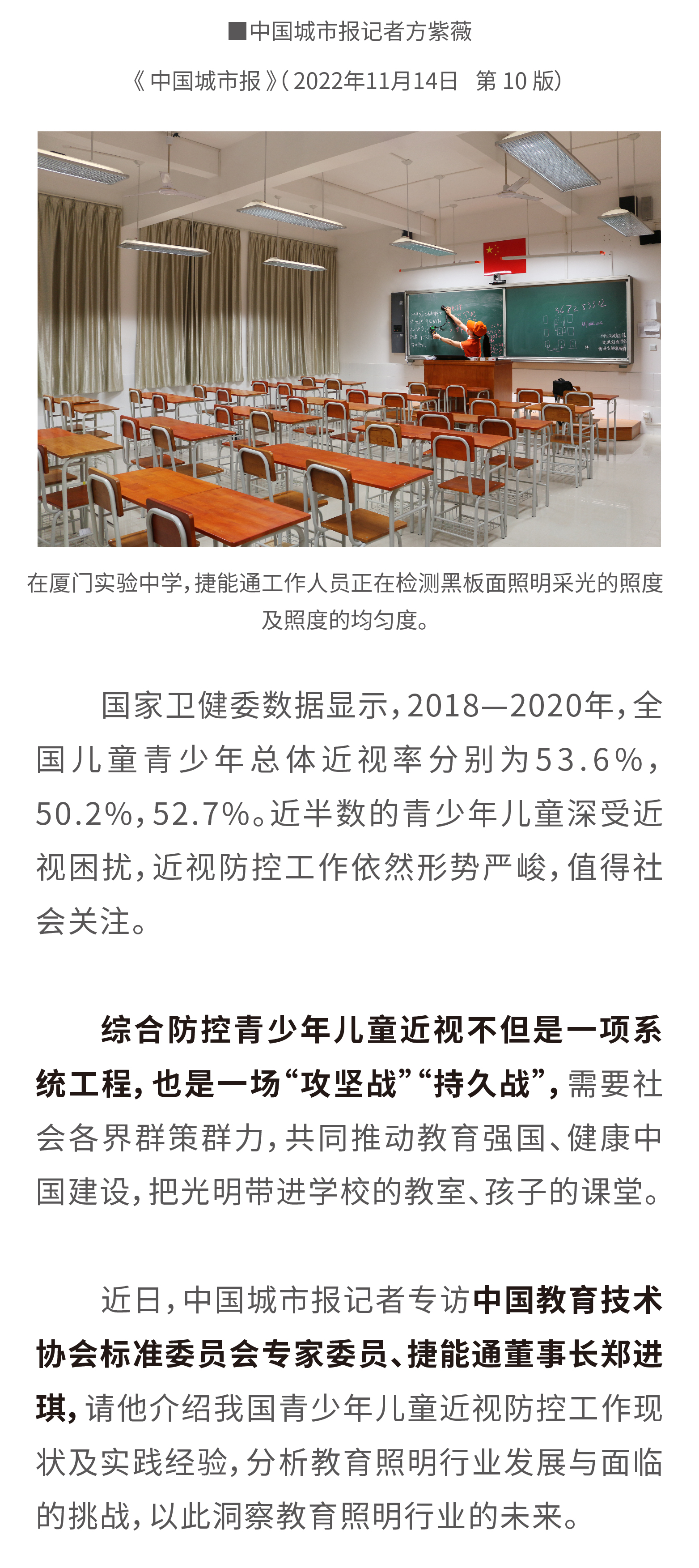教育照明行業蓬勃發展中國城市報:近年來,國家非常重視兒童青少年近視防控工作,出臺了一系列近視防控政策,引發行業和社會的廣泛關注。對此,您的看法如何?