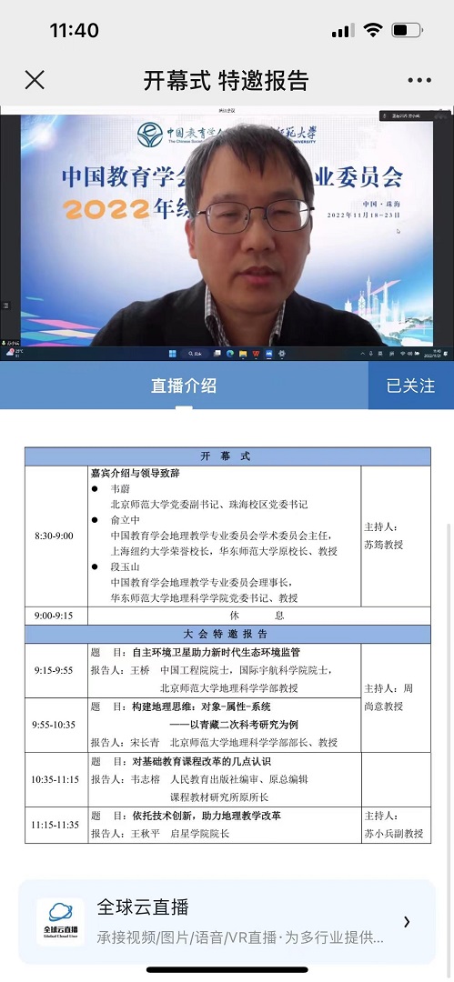 受疫情影響,11月18-23日,中國教育學會地理教學專業委員會2022 年綜合學術年會通過“主會場+分會場”、“線上直播”的方式舉行。