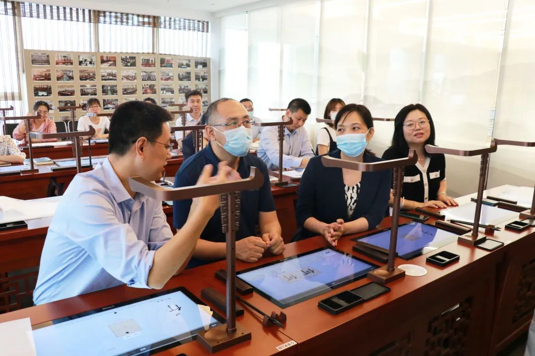 6月13日,中國教育裝備行業協會未來教育裝備分會秘書長孔凡明、副秘書長胡洪及協會成員走進華文眾合參觀調研。