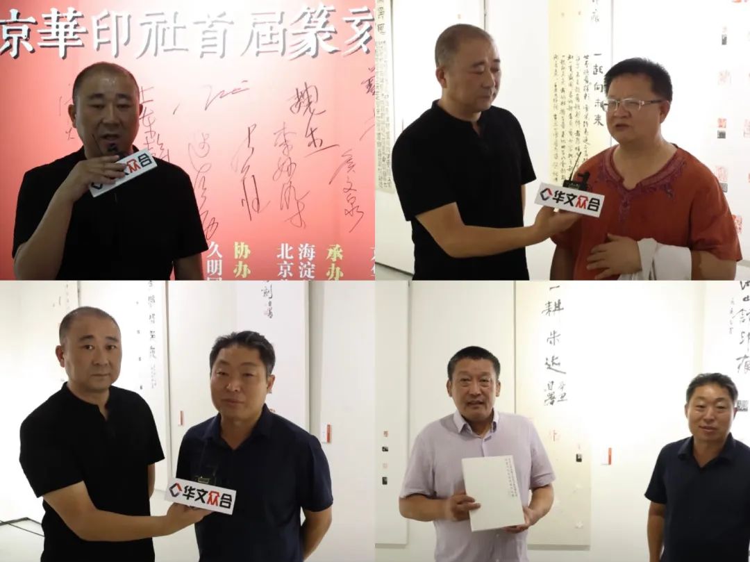 中國書法家協會原主席蘇士澍,《中國書法》社長兼主編、《中國書法報》社長兼總編朱培爾,中國書畫收藏家協會金石碑刻研究會主任李漢臣,鄭州大學書畫研究院副院長海萌輝等嘉賓蒞臨展廳,參加“名家談金石書法”的主題直播活動。