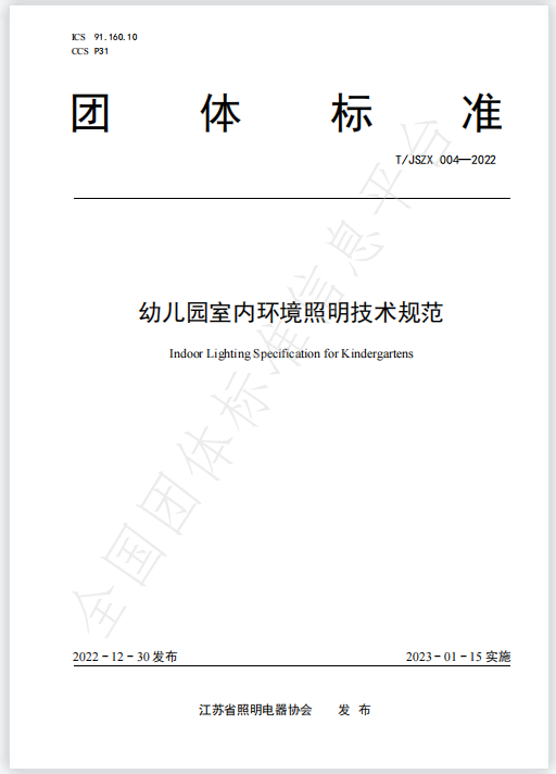 由江蘇省照明電器協(xié)會(huì)提出并歸口的團(tuán)體標(biāo)準(zhǔn)《幼兒園室內(nèi)環(huán)境照明技術(shù)規(guī)范》經(jīng)立項(xiàng)、起草、征求意見、技術(shù)審查等標(biāo)準(zhǔn)編制流程,于2022年12月30日正式發(fā)布,自2023年1月15日實(shí)施。