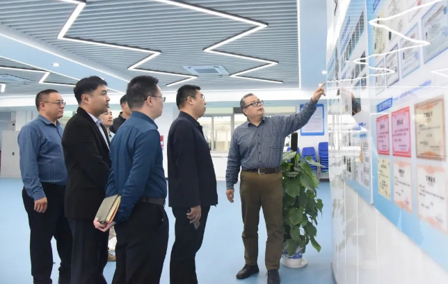 廖強華副院長(右一)帶領企業代表參觀深職院實驗室。