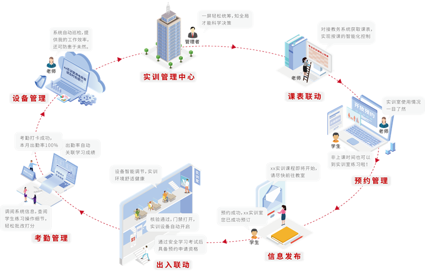學校作為教育核心載體,同時也是數字教育推動建設的主戰場。立達信從學校中的人、事、物出發,利用信息技術升級教學設施、科研設施和公共設施,建設智慧教室、實訓室等信息化教學場所環境,實現數字化、智能化升級改造、規范化建設、融合創新,促進學校物理空間與網絡空間一體化建設。構建多主體參與、多形式服務的具有時效性、專業性特點的數字教育服務體系。