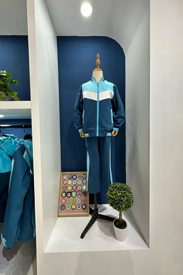本系列校服設計靈感源于植物 — 薄荷。主色調為清雅的幽藍色,綠色和白色貫穿始終,象征生生不息、質樸純凈的向陽之力。