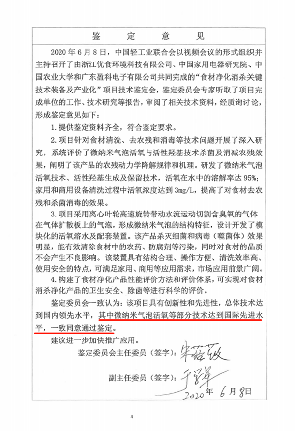 具有自主知識(shí)產(chǎn)權(quán)的“微納米氣泡活氧羥基”(UISH MOH+ Ⓡ)技術(shù)被中國(guó)輕工業(yè)聯(lián)合會(huì)鑒定為國(guó)際先進(jìn)。