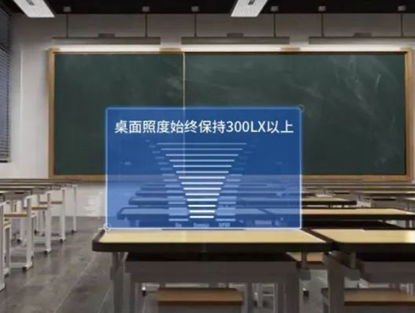 智能化的LED教室燈包含上課模式、自習模式、考試模式、投影模式、課間模式等模式,提供全天候舒適的光環境,避免因天氣、時間等因素造成的桌面、黑板照度及均勻度不足,保證系統始終運行在最合適狀態,保護學生視力。