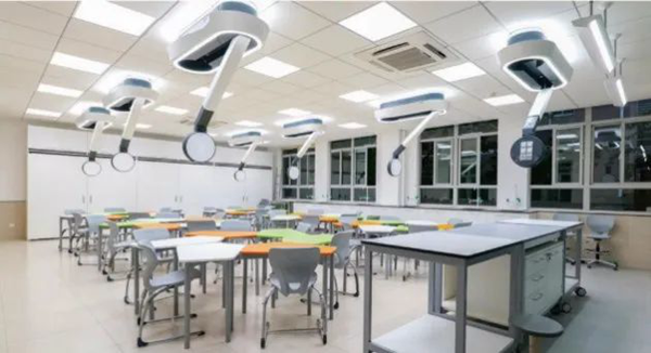 有的企業為我們展示了對未來學校的學習空間如實驗室(專業教室)的設計理念與規劃。它有開放的、靈活變化的空間,有跨學科學習的平臺、有安全高效的教學場所,這些都可以通過天花板媒介供應系統與可自由移動的學習家具等系統和設備提供。