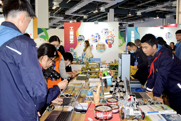 本次博覽會特別設置了“裝備賦能綜合實踐活動主題區”。裝備賦能綜合實踐活動主題區分為“生活知趣”“工程技藝”“藝術修為”“科技創新”四個板塊,由上海各區的20余所學校帶來精彩紛呈的主題課程,并在博覽會現場進行互動和展示。課程貼近學生的日常生活,引導孩子用科學方法解決生活中的實際問題。
