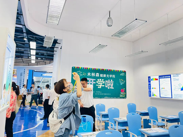 現場全面展示了采用全光譜核心技術的一系列燈具產品,其中睿系列等多款護眼燈產品可以廣泛用于教室等不同環境,用最接近自然光的光線呵護學生的用眼健康。
