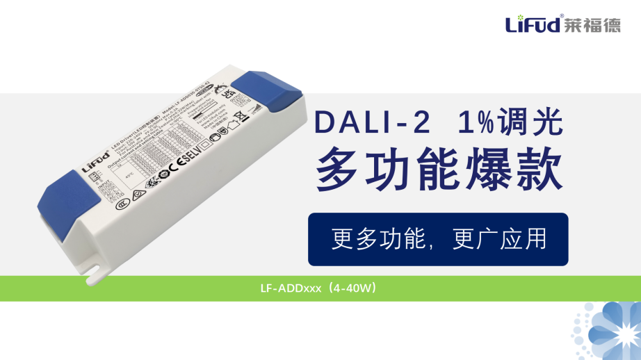 ADD系列擁有009/013/030/040四個型號,功率覆蓋4-40W,是萊福德面向1%調光需求市場上市的一款多功能DALI-2認證產品。