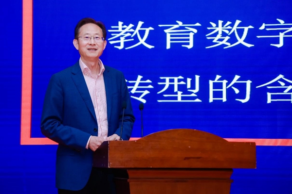 中國教育裝備行業(yè)協(xié)會(huì)專家委員會(huì)副主任委員、華東師范大學(xué)終身教授、華東師范大學(xué)上海智能教育研究院院長袁振國以“教育數(shù)字化轉(zhuǎn)型的本質(zhì)和突破點(diǎn)”為題作主旨報(bào)告。他指出教育數(shù)字化轉(zhuǎn)型的本質(zhì)功能是促進(jìn)教育個(gè)性化,教育數(shù)字化是對(duì)教育的賦能,更是對(duì)未來教育的想象和重塑。他認(rèn)為教育數(shù)字化的突破點(diǎn),在于創(chuàng)新學(xué)習(xí)、教學(xué)、管理、評(píng)價(jià)等應(yīng)用場(chǎng)景,實(shí)現(xiàn)人機(jī)融合,開發(fā)人性化的數(shù)字資源。他提出希望通過本次大會(huì),群智激蕩,群智匯聚,共創(chuàng)教育數(shù)字化的美好未來。