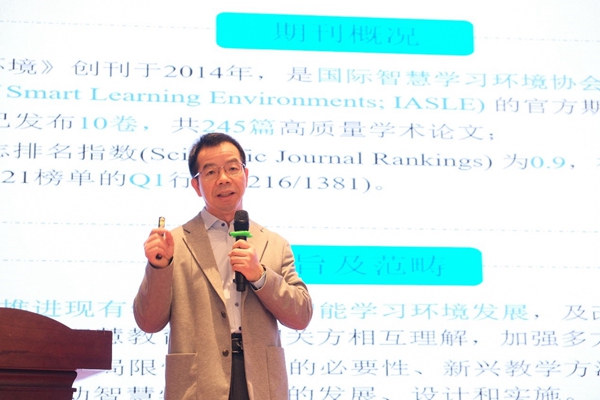 中國教育裝備行業(yè)協(xié)會(huì)專家委員會(huì)副主任委員、教育部教育信息化戰(zhàn)略研究基地(北京)主任、北京師范大學(xué)互聯(lián)網(wǎng)教育智能技術(shù)及應(yīng)用國家工程研究中心主任黃榮懷以“智慧學(xué)習(xí)環(huán)境與教育智能裝備”為題做主旨報(bào)告。他對(duì)國內(nèi)外智慧學(xué)習(xí)環(huán)境發(fā)展趨勢(shì)進(jìn)行了分析,梳理提出區(qū)塊鏈技術(shù)、元宇宙、聊天機(jī)器人、可穿戴技術(shù)在教育中的應(yīng)用。他分享了人工智能技術(shù)的新進(jìn)展,提出人工智能賦能學(xué)習(xí)的關(guān)鍵場(chǎng)景,特別對(duì)智慧學(xué)習(xí)環(huán)境及裝備發(fā)展提出建議:支持從規(guī)模化教育向數(shù)據(jù)驅(qū)動(dòng)、情境化、個(gè)性化的智慧教育生態(tài)轉(zhuǎn)變;創(chuàng)新大規(guī)模教育的測(cè)評(píng)方法與技術(shù),支撐規(guī)模化教育和個(gè)性化培養(yǎng)有機(jī)結(jié)合;設(shè)計(jì)智慧學(xué)習(xí)環(huán)境和工具時(shí)應(yīng)考慮倫理問題、人類尊嚴(yán)及其包容性和公平性;創(chuàng)建和匯聚合適的數(shù)字資源,夯實(shí)數(shù)字化應(yīng)用及服務(wù)基礎(chǔ)。