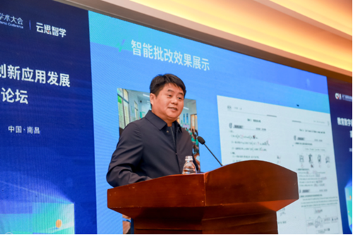 唐旭就江西打造智慧作業生態圈的創新實踐進行了分享。他認為,作為基礎教育的“神經末梢”,作業是撬動教育質量的支點,是落實雙減政策的數據基底,他以作業為切口,重點介紹了AI批改技術助推教育數字化轉型的實踐,以技術驅動教育核心場景變革,助力精準教學,提高教學效果,推動教育高質量發展。