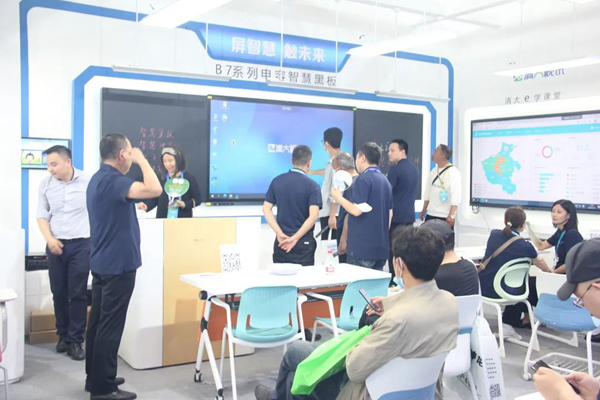 清大視訊專注教育,在本次展會中為用戶提供全生態全場景的智慧教育整體解決方案,打造智慧教育應用矩陣。為此我們展示了清大視訊全新升級的第七代智慧黑板、多拼智慧黑板、電子班牌、“三個課堂”互動錄播大屏等教育信息化裝備,自主研發應用于課堂的“清大e學”教學等平臺,受到了許多參觀者的關注和贊譽。