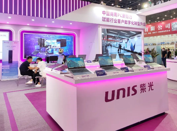 在紫光計算機展位,采用英特爾處理器的商用臺式機UltiDesk 500t,商用筆記本UItiBook Pro 14 、UItiBook 14;采用國產化處理器的商用臺式機UNIS D3812 G2、UNIS D3830 G3、UNIS D3890 G2,商用筆記本UNIS L3891 G2、UNIS L3813 G2;商用顯示器Unis B241F、Unis B245F;以及紫光系統急救箱、紫光電腦管家、紫光雙系統解決方案、紫光國產化教育解決方案、紫育硬盤保護組件、紫育電子教室,還有高速掃描儀、條碼掃描儀、固定式掃描器、移動數據終端、條碼打印機、投影機、簽批屏、拍攝儀等軟硬件產品及解決方案悉數展出。