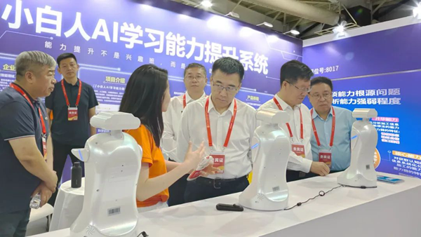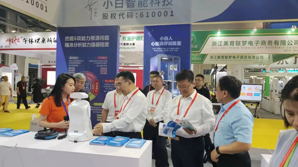 吉林省各級教育裝備、信息等部門負責人和校長、老師等專業人士集體到小白人展位蒞臨指導,對小白人AI學習能力提升系統,給予鼓勵和認可。