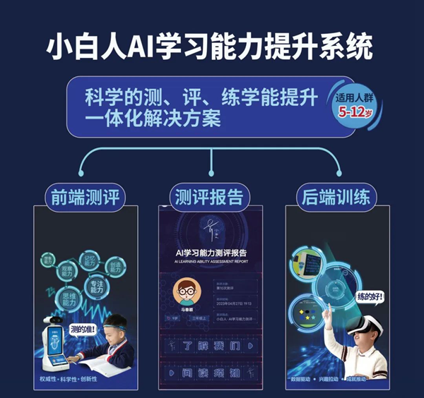 小白智能科技自主研發的小白人AI學習能力提升系統,圍繞科學的測、評、練全場景,提供一體化學習能力提升解決方案。