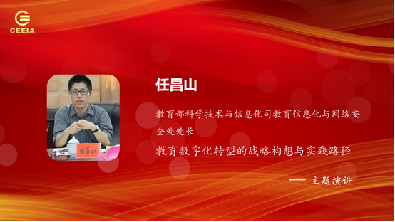 任昌山作了題為“教育數(shù)字化轉(zhuǎn)型的戰(zhàn)略構(gòu)想與實踐路徑”的主題報告,對教育數(shù)字化轉(zhuǎn)型的相關(guān)政策進(jìn)行了解讀。