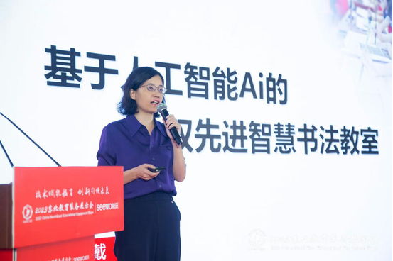 北京華文眾合科技有限公司董事長助理戴敏作《基于人工智能AI的雙先進(jìn)智慧書法教室》報告