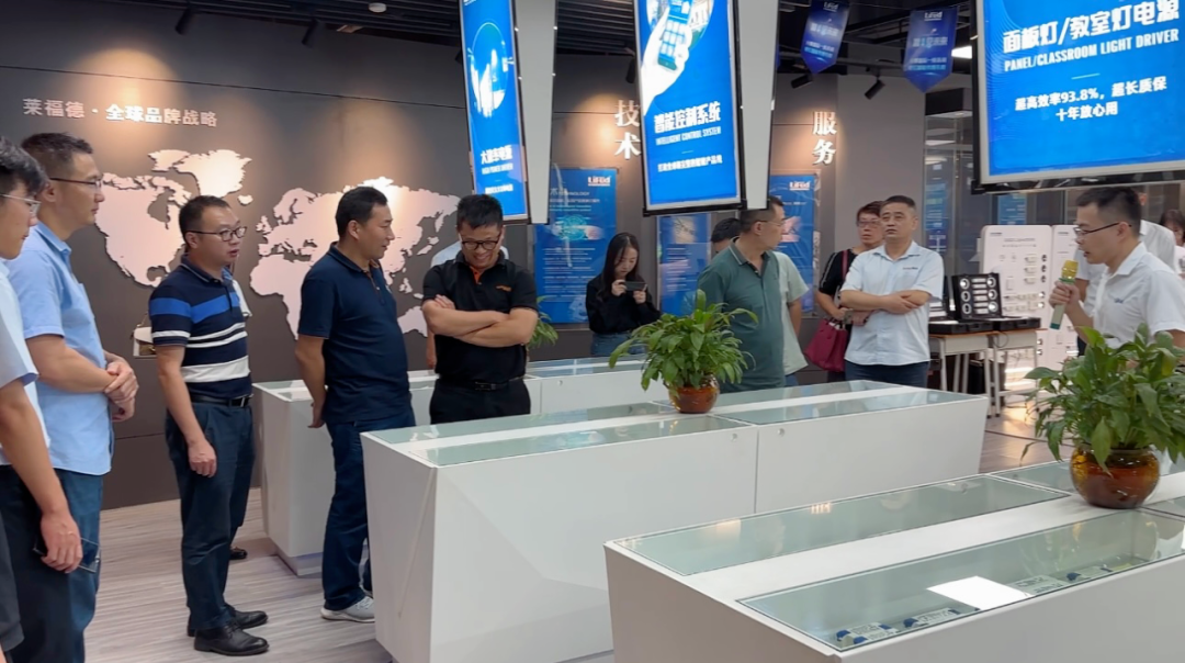 會后,萊福德李松濤先生帶領參會企業(yè)及協(xié)會媒體一起參觀了萊福德產(chǎn)品展廳及國家CNAS認證實驗室,讓現(xiàn)場客戶伙伴親身體驗了萊福德DALI、0-10V、可控硅、無線、非調光等全套電源解決方案在筒射燈的應用效果,及萊福德認證測試現(xiàn)場設備、環(huán)境及操作流程。