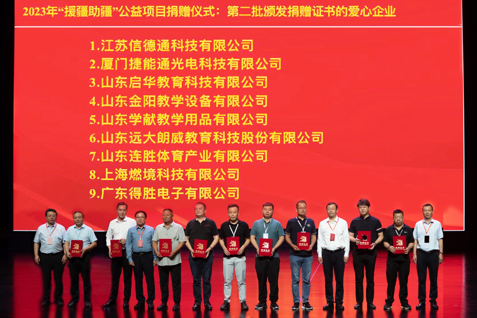 “援疆助疆”公益項目捐贈儀式上,中國教育裝備行業協會攜河北、廣東、山東、上海等28家愛心企業通過中國教師發展基金會向自治區教育廳和新疆生產建設兵團教育局捐贈價值近2200萬元的教育裝備產品和整體解決方案,助力新疆教育數字化轉型。