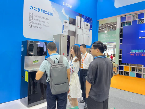 碧麗展位絡繹不絕,吸引了眾多客戶咨詢碧麗飲水設備,產品不僅具備節能環保的特點,更可滿足用戶對安全、健康、便捷等多重需求,在校園場景中實力守護師生飲水健康!