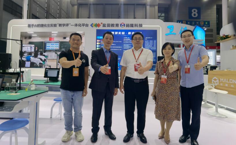 【深圳市教育局黨組成員、副局長趙立(右三)蒞臨碼隆展位參觀指導】