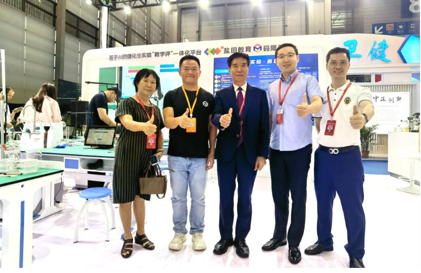 【教育部關心下一代工作委員會常務副主任、中國教育裝備行業協會專家委員會主任王富(右三)蒞臨碼隆展位參觀指導】