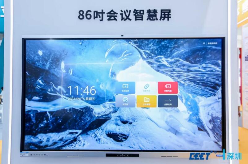 同時(shí)展出86、98吋的CV2H會(huì)議智慧屏,擁有4800w攝像頭和8陣列麥克風(fēng),可實(shí)現(xiàn)文件管理、遠(yuǎn)程會(huì)議、無(wú)線投屏、電子白板等多種功能,為學(xué)校的會(huì)議室保駕護(hù)航。