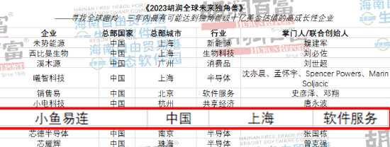 小魚易連榮登《2023胡潤全球未來獨角獸》榜單