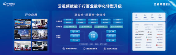 小魚易連突破傳統視訊方式,用云視頻不斷開創融合業務的創新場景,圍繞政務、政法、央國企、金融、教育、醫療等全行業的高質量數字化轉型,推出會議會商、指揮調度、協同辦公、黨建培訓、移動警務、遠程庭審、智慧網點、對公雙錄、遠程教學、遠程會診等視訊新應用,為千行百業的數字化提供堅實云視頻支撐。