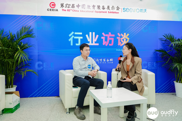 在采訪區(qū),清聽聲學(xué)CTO匡正博士接受了中國教育裝備網(wǎng)的采訪。明天上午,匡正博士還將出席“推進(jìn)教育信息技術(shù)應(yīng)用創(chuàng)新發(fā)展論壇”,并發(fā)表《寧靜校園與青少年聽力防控》主題演講,與各位專家一同解讀教育信息技術(shù)應(yīng)用創(chuàng)新政策,研討教育信息技術(shù)應(yīng)用創(chuàng)新發(fā)展路徑。