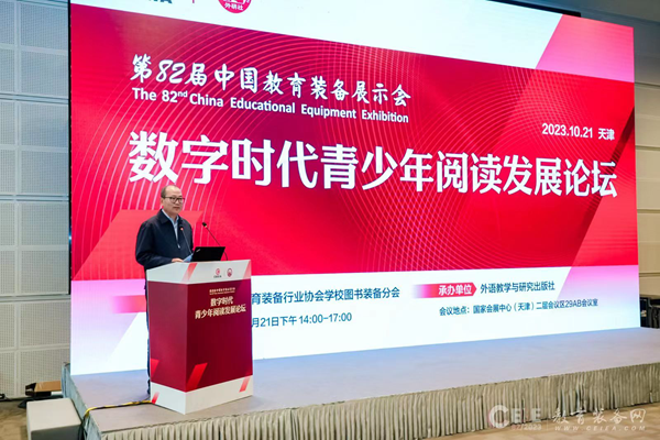 10月21日下午,由中國教育裝備行業協會主辦,外語教學與研究出版社承辦的數字時代青少年閱讀發展論壇在第82屆中國教育裝備展示會期間舉辦。論壇采用線上線下同步直播方式進行,近5000人線上參會。