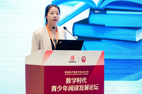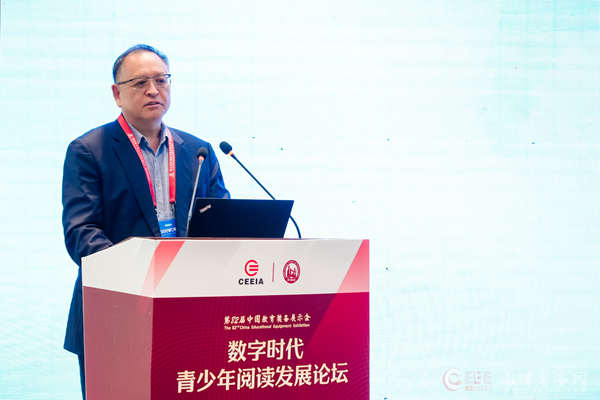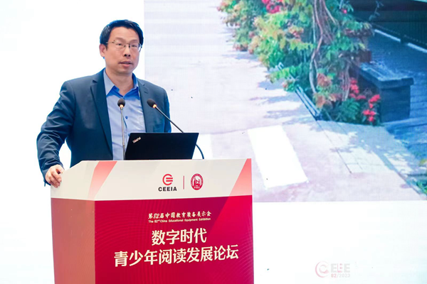 中國教育裝備行業協會副會長王強出席論壇并致辭。他表示,近年來國家在教育數字化方面取得了豐厚的成果。數字技術的廣泛使用,讓教育和閱讀更為便利,青少年閱讀的選擇日趨曾多,與此同時,青少年閱讀也出現了一些新的挑戰。在數字時代,我們需要關注青少年閱讀發展的新問題和新需求,積極探索數字化閱讀與傳統閱讀的有機結合,推動青少年閱讀的全面發展。