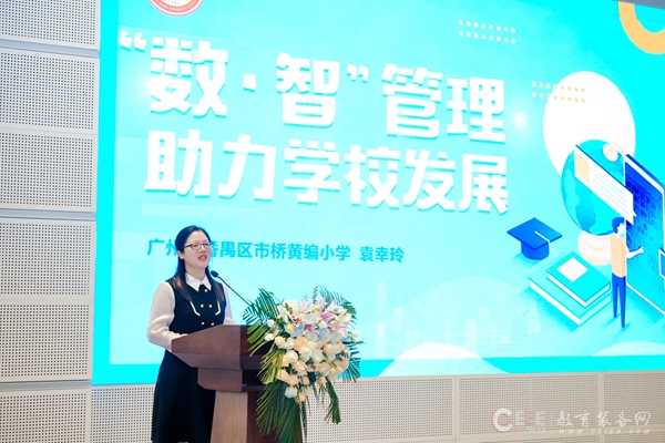 廣州市番禺區市橋黃編小學校長袁幸玲作關于《“數•智”管理 助力學校發展》的優秀案例分享