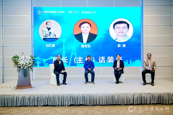 會議最后,山東濱州市教育局長、山西臨汾洪洞縣教育局長、長春市教育局局長共同參與局長話裝備沙龍環節。